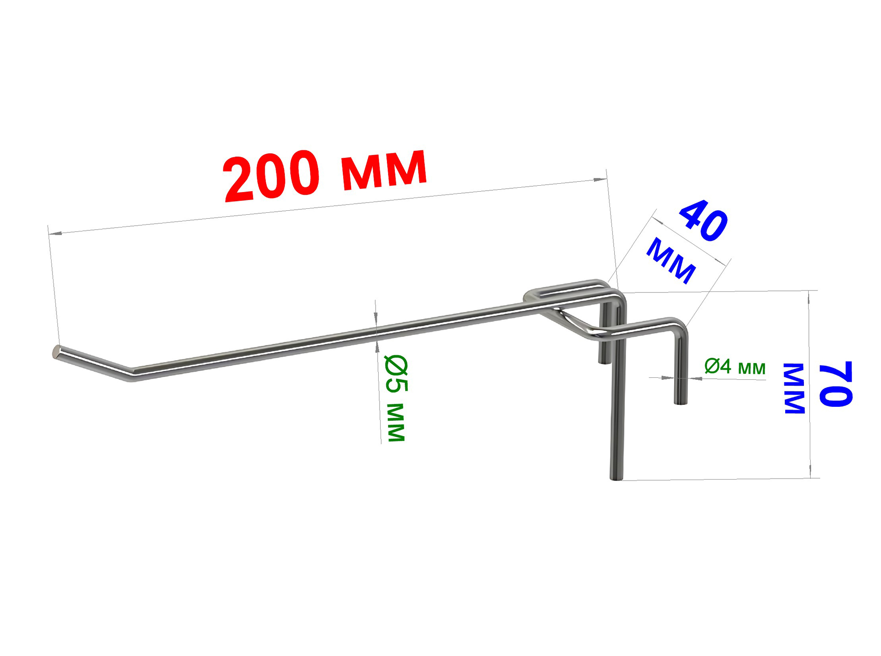 Длина 200 мм. Диаметр основного прутка 5 мм. Зацеп проволочный на сетку.