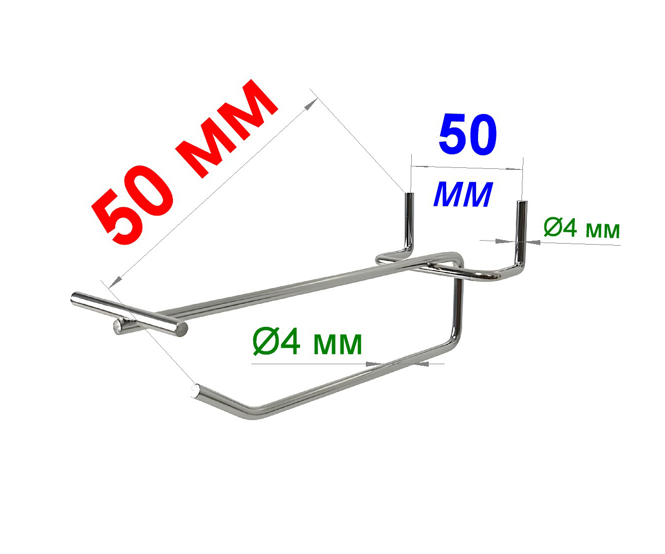 Длина 50 мм. Диаметр основного прутка 4 мм. Зацеп на перфорацию с шагом 50 мм.