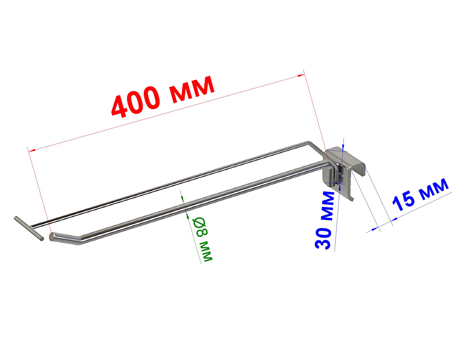 Длина 400 мм. Диаметр основного прутка 8 мм.