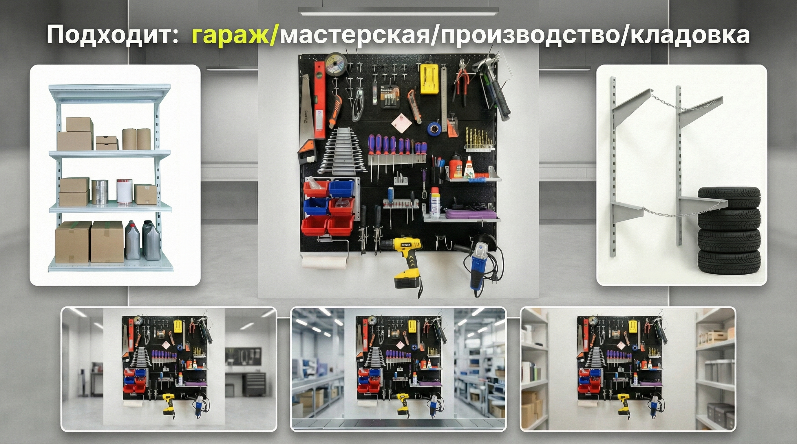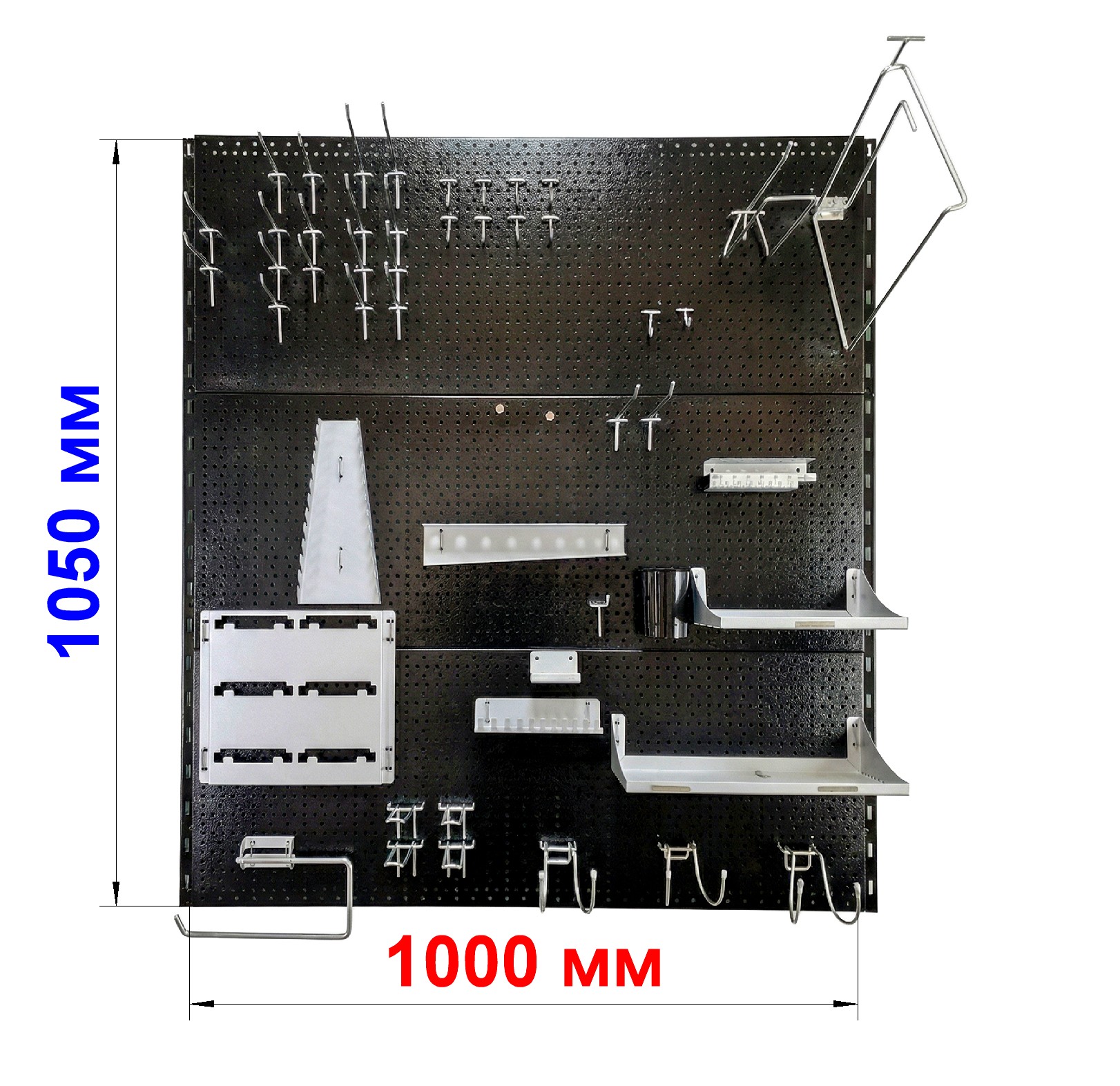 Набор держателей инструмента с перфорированными панелями В Гараж ОПТИМА БЕТА-2 1000, цвет ЦЕРНЫЙ - система для хранения инструментов на перфорации.