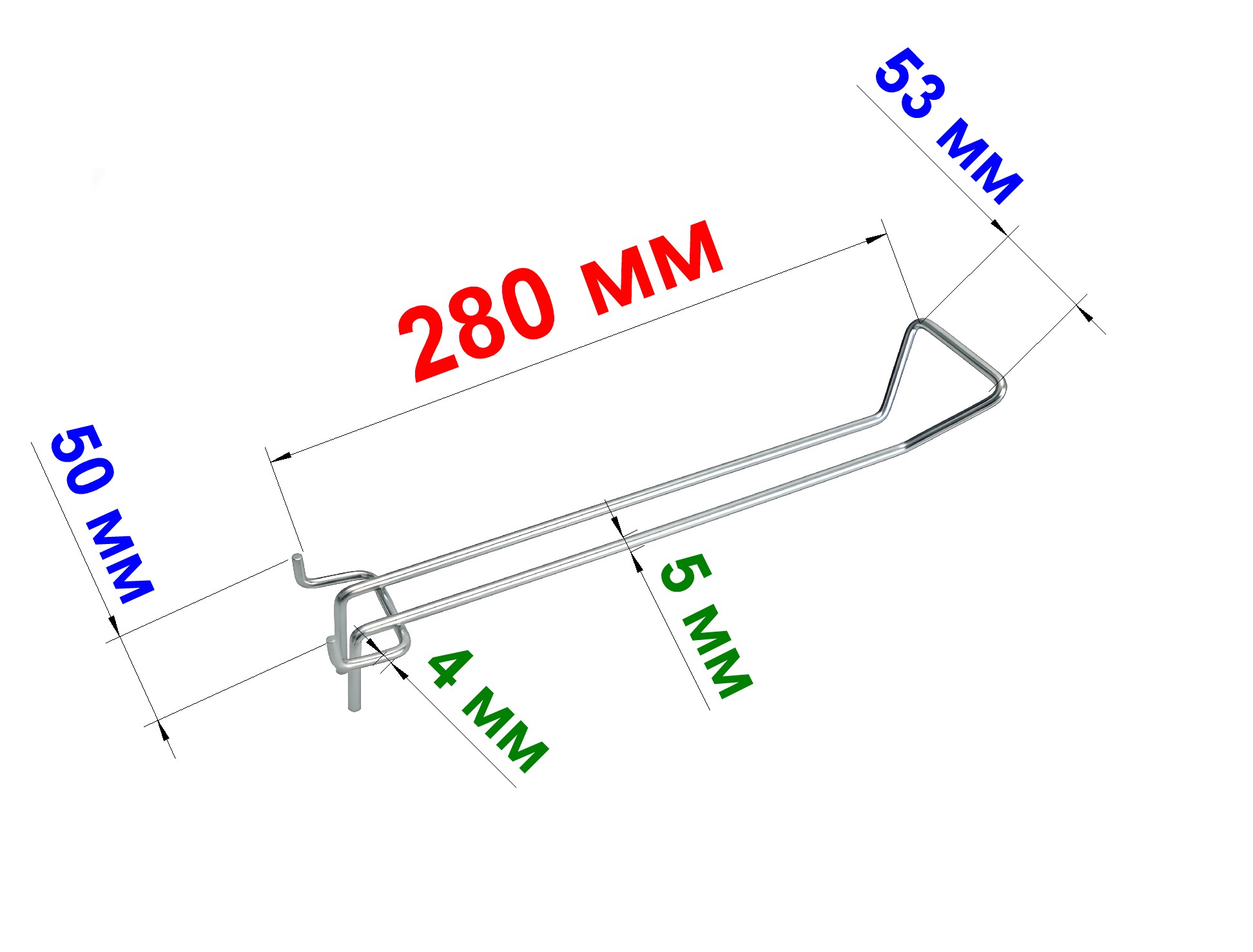 Крючок двойной для гибкой подводки 280 мм пруток 5мм на перф. шаг 50