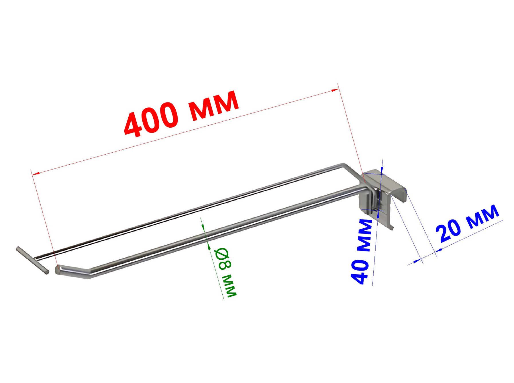 Длина 400 мм. Диаметр основного прутка 8 мм.