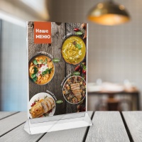 Менюхолдер A4, настольный, двусторонний, литьевой полистирол, прозрачное основание