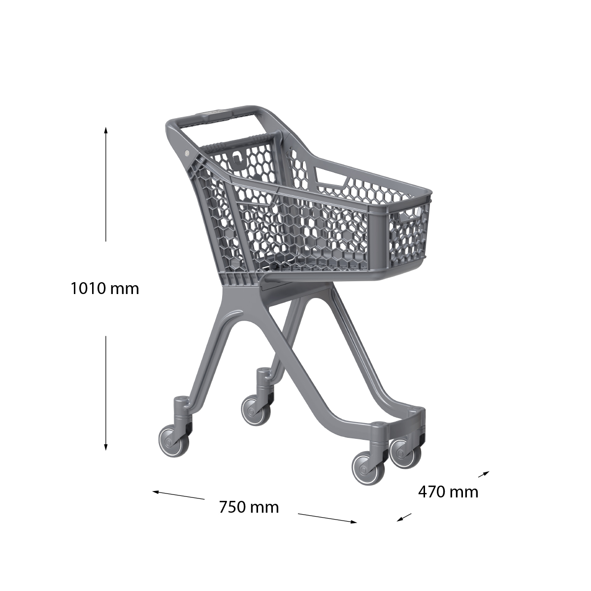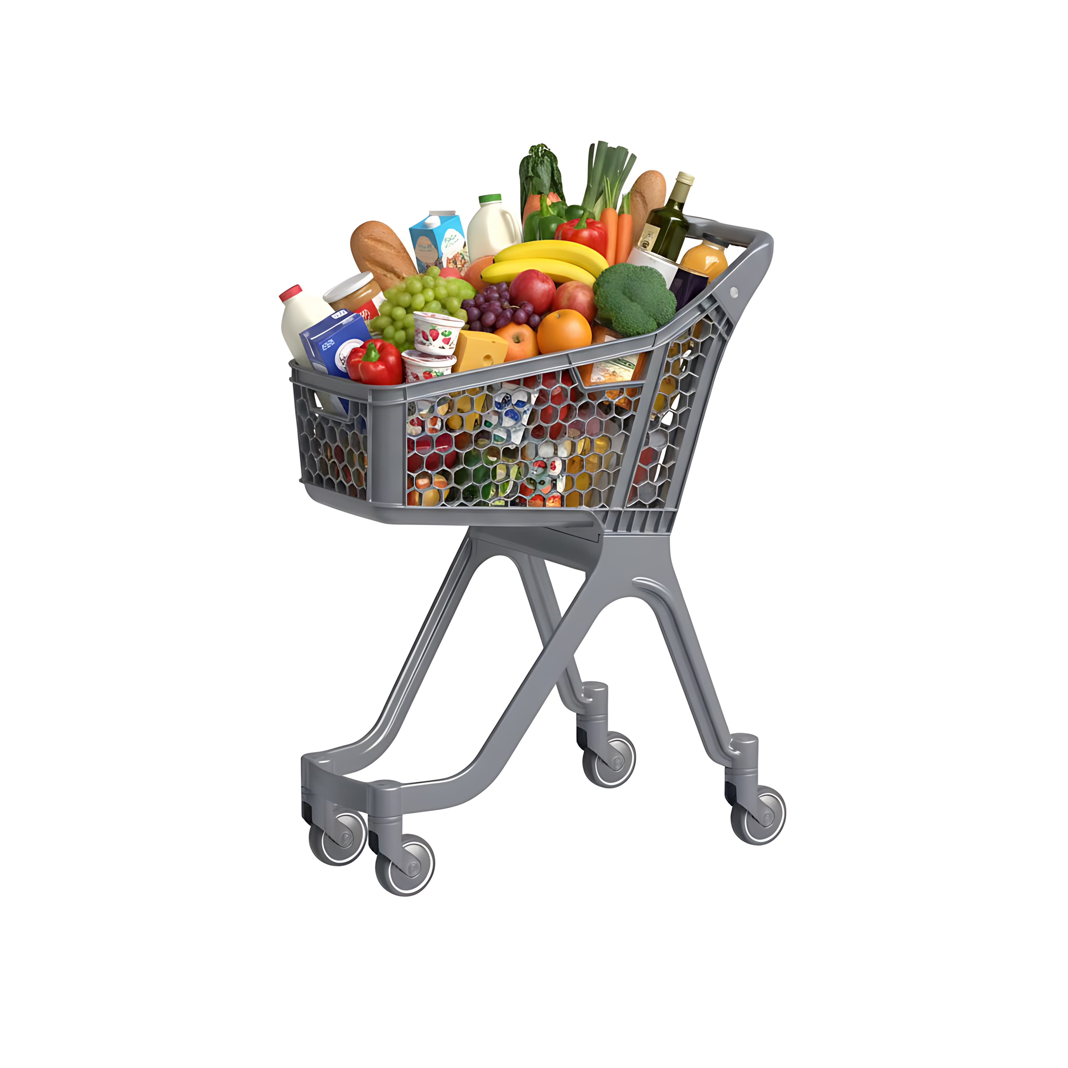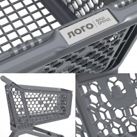 Современная пластиковая тележка для комфортного шопинга.