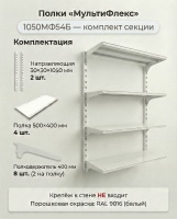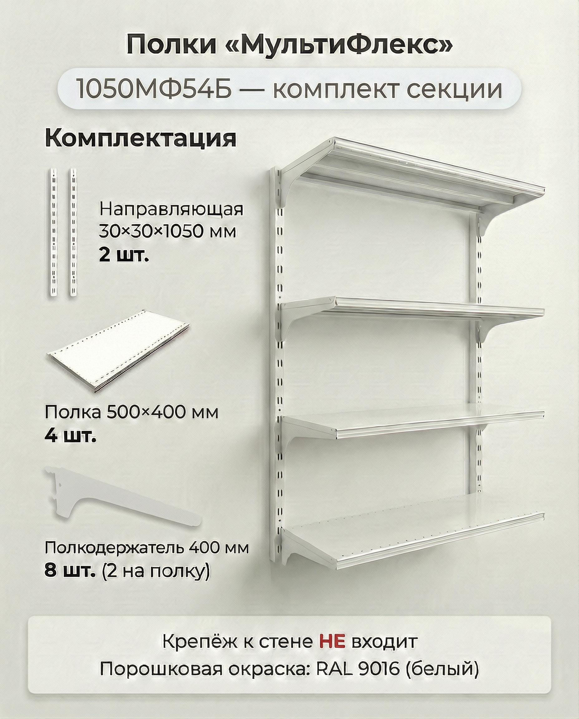 Система хранения на стену «МультиФлекс» — настенный стеллаж с полками 500×400, 4 полки, до 70 кг/распределенной нагрузки, белый RAL 9016
